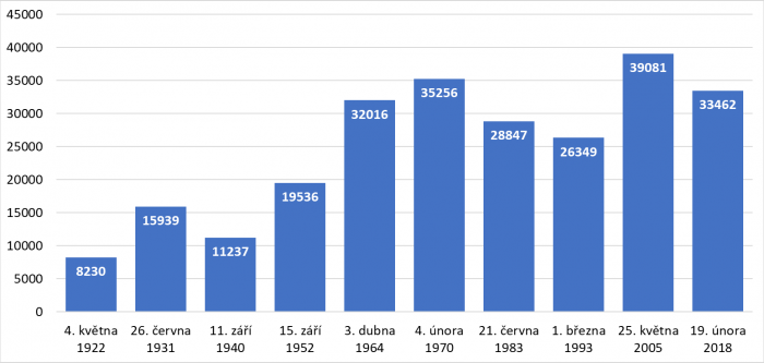The OnomOs v1 and OnomOs v2 corpora are linguistically processed databases of texts from the periodicals Rudé právo (published 1920–1995) and Právo (1995–present). The OnomOs v1 corpus includes one randomly selected issue from each decade in which Rudé právo was published. The composition of the corpus is detailed in Figure 1; the corpus contains a total of 255,149 tokens.